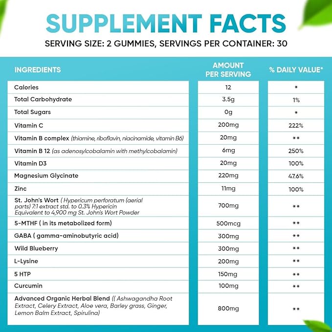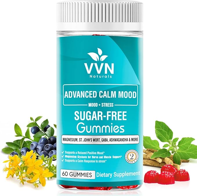 Sugar Free 22 in 1 Calm Mood Gummies St. John's Wort, 5-HTP, GABA, Ashwagandha| Magnesium Glycinate Gummies | Non-GMO, Natural Support Stress & Relaxation, Mood & Energy | Vegan, 60 ct.