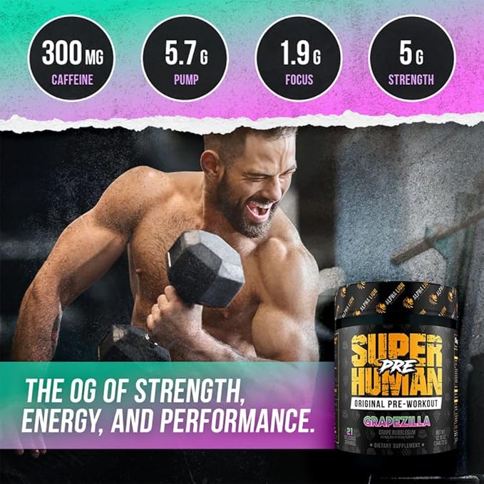 ALPHA LION Superhuman Pre Workout Powder, Beta Alanine, L-Taurine & Tri-Source Caffeine for Sustained Energy & Focus, Nitric Oxide & Citrulline for Pump (21 Servings, Grapezilla)