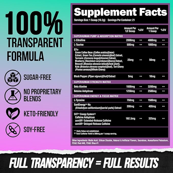 - IMPORTANT DISCLAIMER: We have updated our serving sizes for our Superhuman pre-workout powder from 42 to 21. You are still receiving the same amount for your motivation juice, just with a bigger scoop!