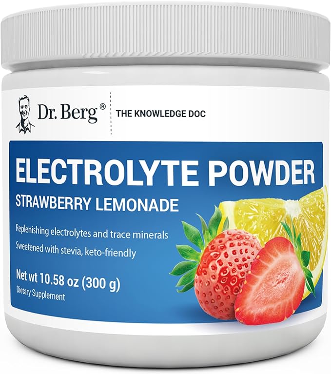 Dr. Berg Zero Sugar Hydration Keto Electrolyte Powder - Enhanced w/ 1000 mg of Potassium & Real Pink Himalayan Salt (NOT Table Salt) - Strawberry & Lemonade Hydration Drink Supplement - 50 Servings