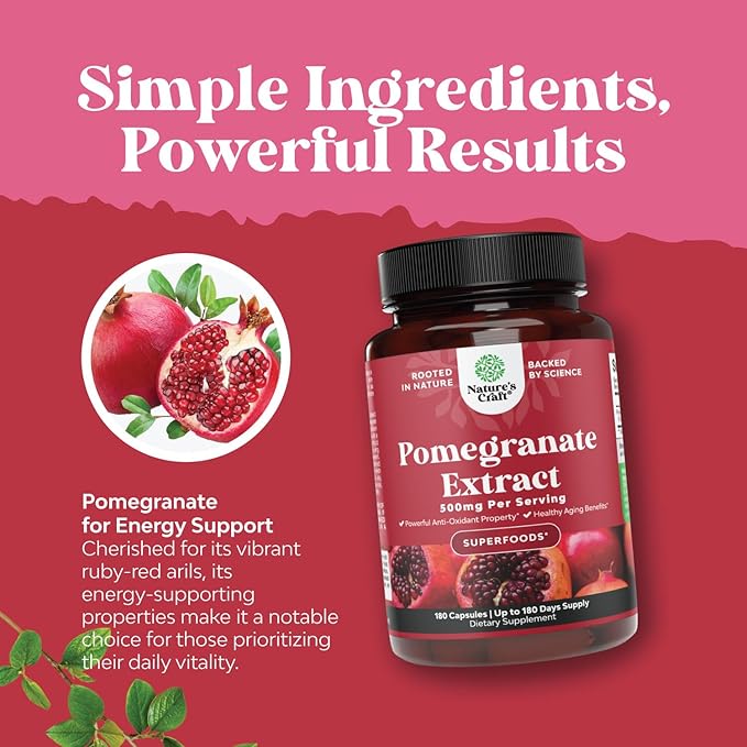 - Quality Assurance - Natures Craft is a trusted name in herbal supplements and we invite you to try our pomegranate supplement made with real fruit that offers countless benefits from head to toe