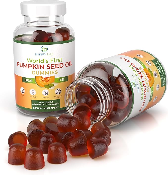 - [World's First Sugar-Free Pumpkin Seed Oil Gummies] Gummies are the most enjoyable of all Vitamin forms. Introducing the very first Pumpkin Seeds Oil Gummies by Purify Life. Ditch those hard-to-swallow pumpkin seed oil capsules, powder, or pills with our potent pumpkin oil gummies from 200 mg of 20:1 pumpkin seed extract.