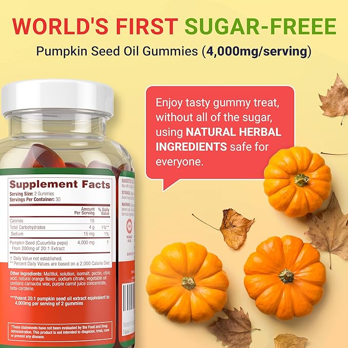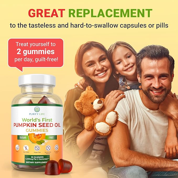 - [World's First Sugar-Free Pumpkin Seed Oil Gummies] Gummies are the most enjoyable of all Vitamin forms. Introducing the very first Pumpkin Seeds Oil Gummies by Purify Life. Ditch those hard-to-swallow pumpkin seed oil capsules, powder, or pills with our potent pumpkin oil gummies from 200 mg of 20:1 pumpkin seed extract.