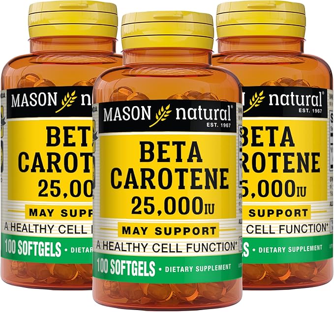 MASON NATURAL Vitamin A Beta Carotene 25,000 IU - Supports Healthy Vision, Cell Function & Immune Function, 100 Softgels (Pack of 3)