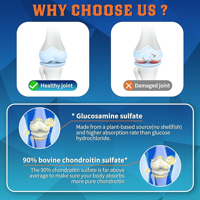 - Complete Joint Support Formula: Combines Glucosamine Sulfate (Shellfish-Free), Chondroitin, and MSM to promote cartilage repair, reduce stiffness, and support overall joint mobility.