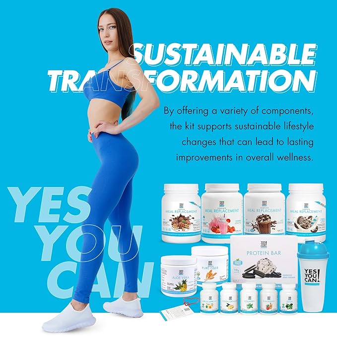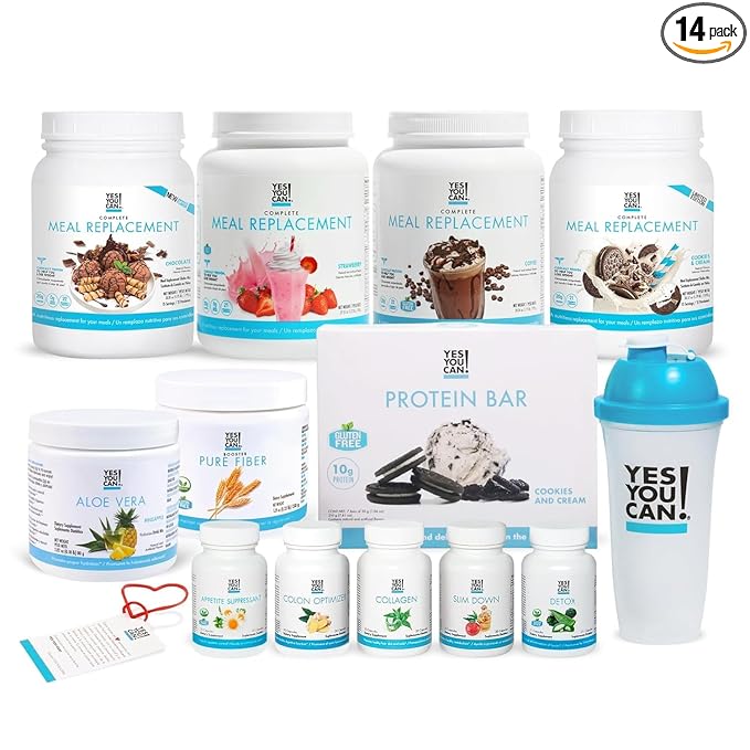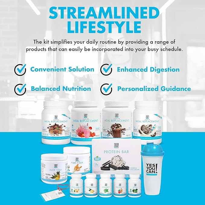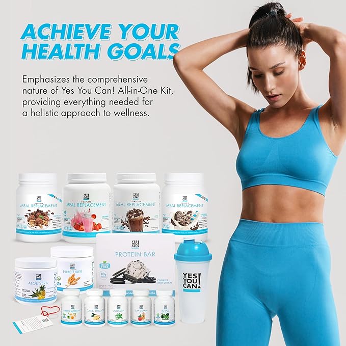 Yes You Can! All-in-One Kit with Meal Replacement Shakes, Aloe Vera Drink Mix, Fiber Shake Mixer, Protein Snacks, Supplements - Complete Wellness Kit