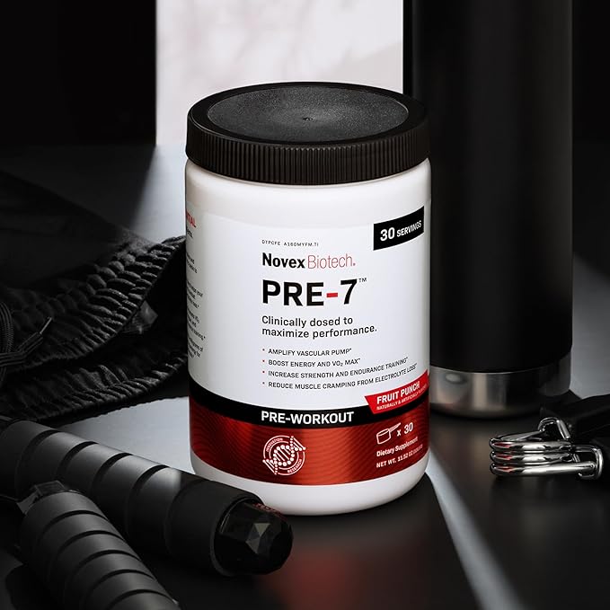 Novex Biotech PRE-7 Pre-Workout Powder – Best preworkout for Men - Boost Energy, Focus, and VO2 max, Increase Strength and Endurance Training, Support Hydration During prolonged Exercise*