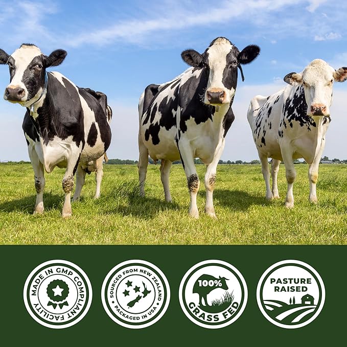 - SOURCE MATTERS: Free Range, Pasture Raised, and 100% Grass-Fed and Grass Finished Bovine from New Zealand. Raised without genetically engineered feed, antibiotics, or added hormones from birth to harvest. Packaged in the USA at a cGMP registered facility.