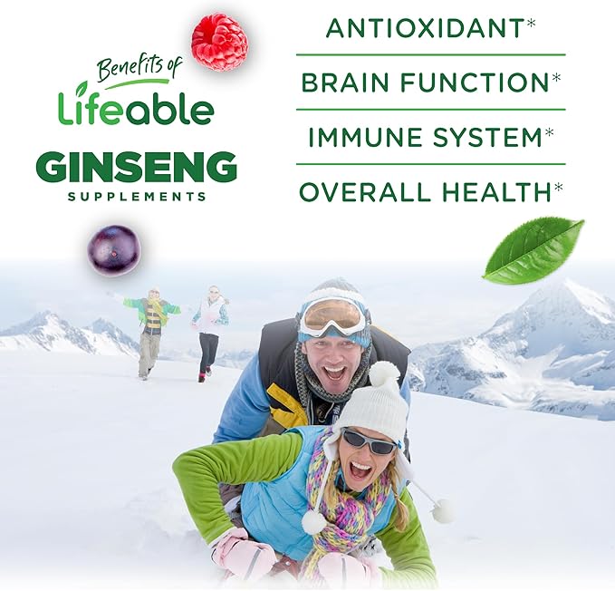 Lifeable Panax Ginseng Supplement Gummies | Great Tasting Ginseng Supplements | Antioxidant Support from Panax Ginseng Extract | Ginseng Gummies for Women, Men, Adults | 90 Gummies