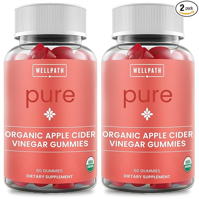 WellPath Pure ACV Apple Cider Vinegar Gummies (2 Pack) with The Mother - USDA Organic Gummy - Raw Apple Cider Vinegar with Mother Supplements - ACV Gummies - 120 Ct