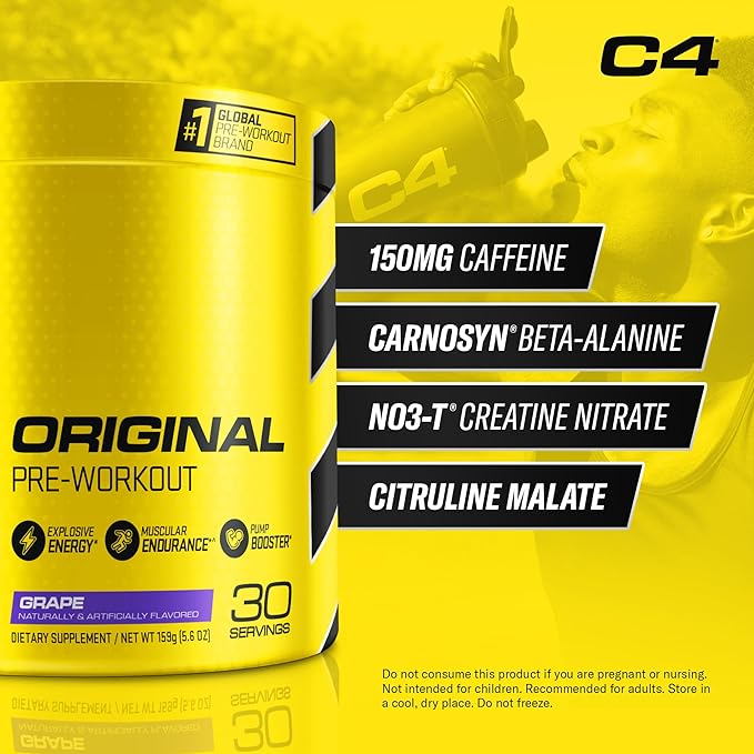 Cellucor C4 Original Pre Workout Powder Grape Sugar Free Preworkout Energy for Men & Women 150mg Caffeine + Beta Alanine + Creatine - 30 Servings (Packaging May Vary)