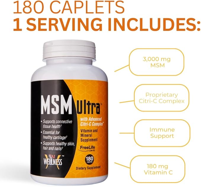 Youngevity Freelife MSM Ultra | 3,000 mg MSM + Proprietary Citri-C Complex Blend + Vitamin C | Ultimate Methylsulfonylmethane Supplement | Bone & Joint Support | 180 Count