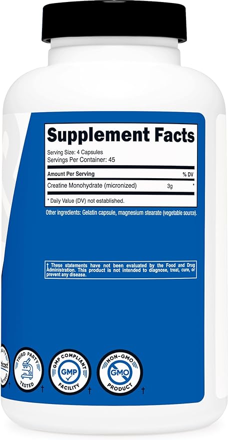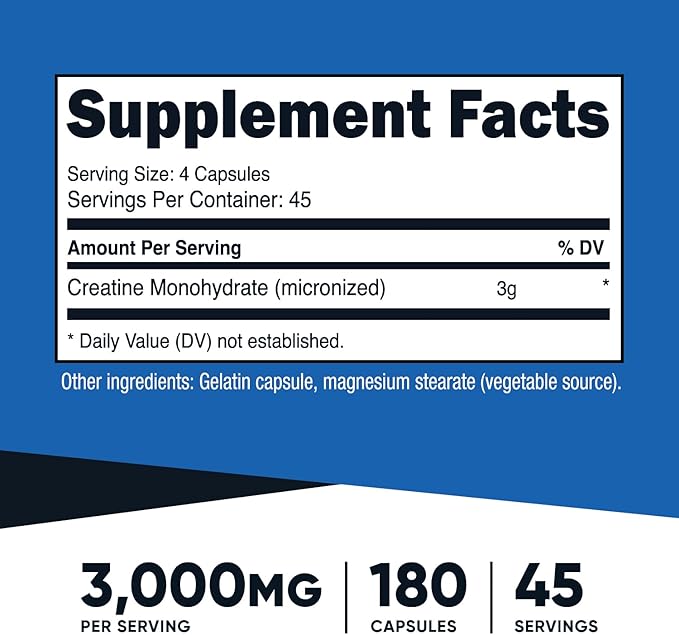 Nutricost Creatine Monohydrate 3,000mg, 180 Capsules (750mg Per Capsule) - Gluten Free, Non-GMO
