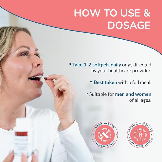 - Recommended Use : Take 1 softgel daily with a meal. Store it in a cool, dry place.