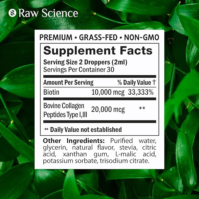 - 【COLLAGEN & BIOTIN LIQUID】 - Raw Science's optimized formula helps to make hair grow faster and longer. A perfect blend of hair vitamins for faster hair growth, infused with biotin 10000mcg, just a few drops a day promotes fast hair growth.