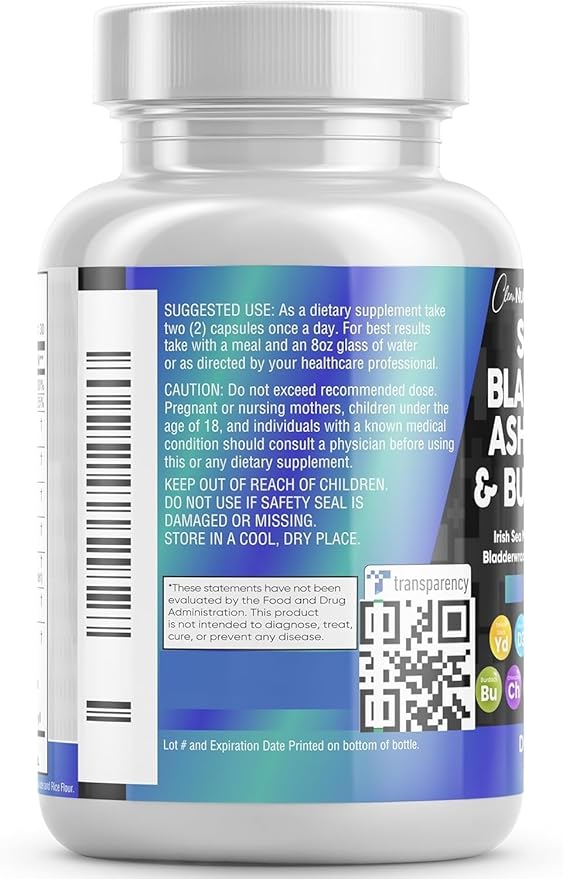 - Primary Supplement Type : Black Seed Oil, Bladderwrack, Sea Moss, Ashwagandha, Burdock Root