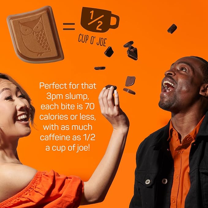 - Natural Energy Boost - With 50mg of caffeine and only 60-70 calories, our bites help tackle your day or beat the afternoon slump. Just one delicious bite equals half a cup of coffee with no artificial colors or flavors (or the mess or taste of coffee!).