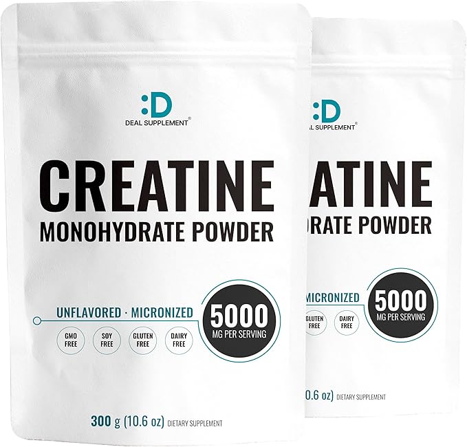 - The most efficient monohydrate form that supports muscle contractions, energy production, and lean muscle mass maintenance. Deal Supplement’s creatine offers 300g of this powerful performance supplement with 60 servings of a 5000mg dose. The micronized particles are broken down into a fine powder so you can mix it or combine it with other workout supplements for top level training.