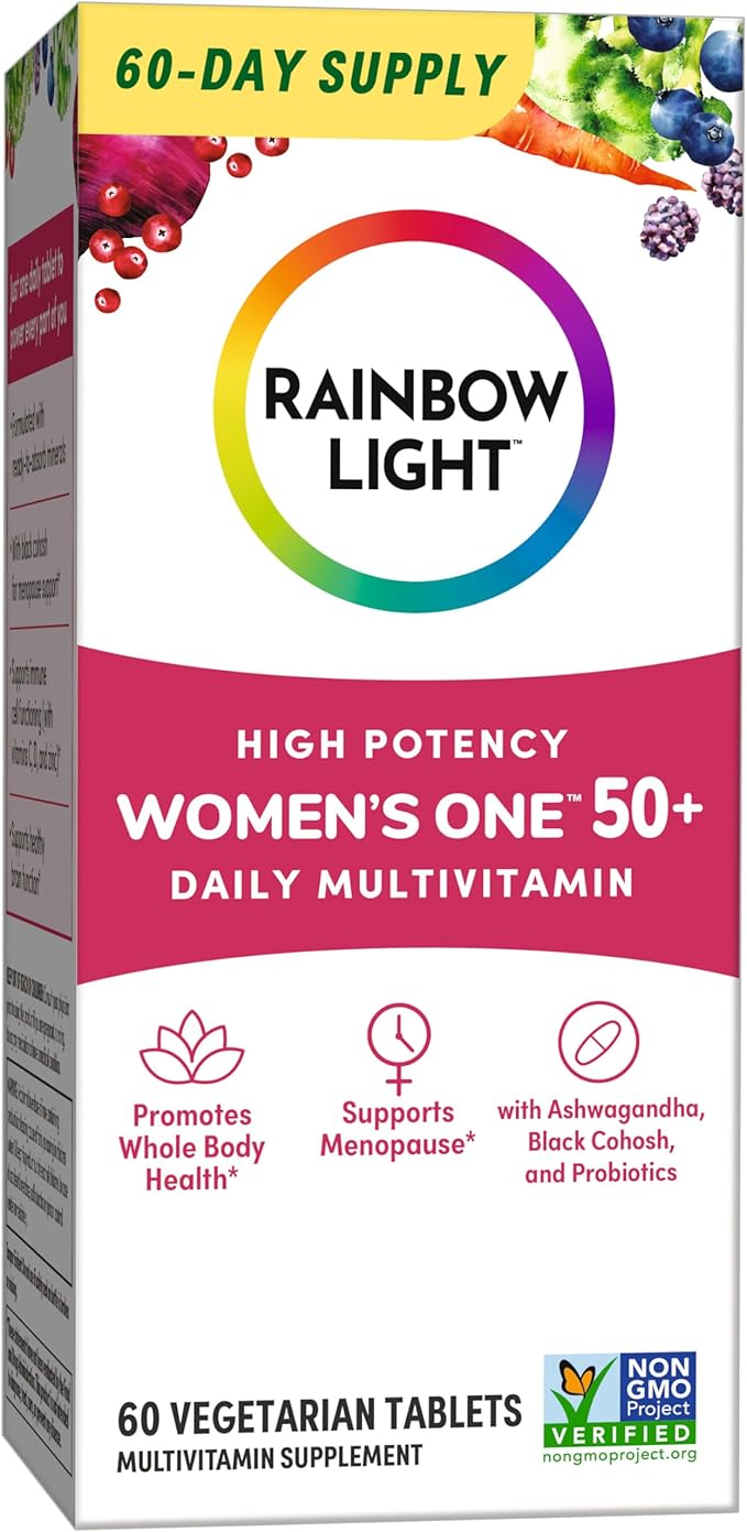 Rainbow Light Multivitamin for Women 50+, Vitamin C, D & Zinc, Probiotics, Women’s One 50+ Multivitamin Provides High Potency Immune Support, Non-GMO, Vegetarian, 60 Tablets