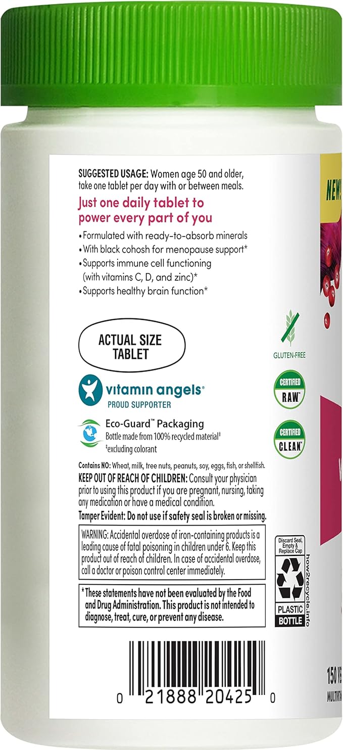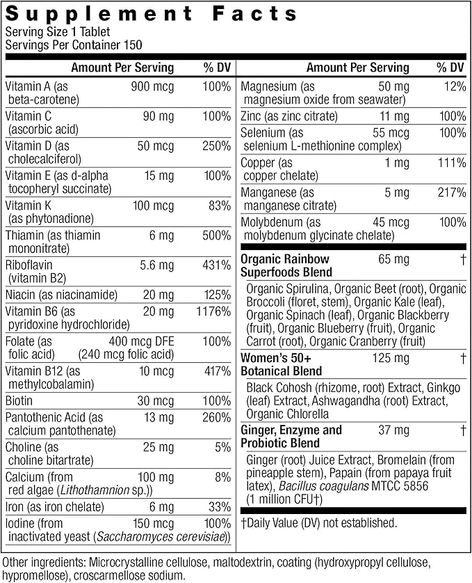 Rainbow Light Multivitamin for Women 50+, Vitamin C, D & Zinc, Probiotics, Women’s One 50+ Multivitamin Provides High Potency Immune Support, Non-GMO, Vegetarian, 150 Tablets