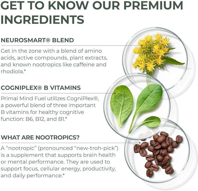 - Created with a Neurosmart Nootropic Blend: Formulated with 11 cognitive-supporting nootropic ingredients, Primal Mind Fuel helps support your ability to focus and stay engaged