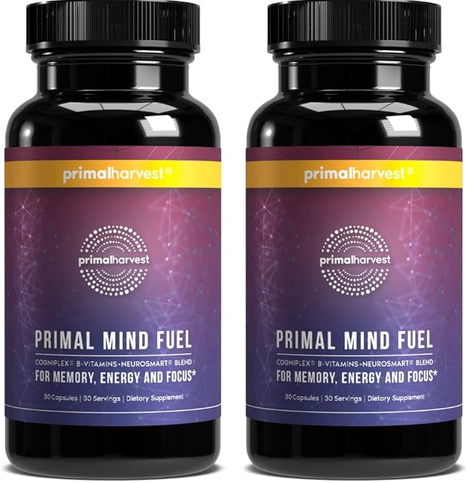 2 Pack, Primal Mind Fuel Brain Booster for Focus, Energy, Clarity, Memory Brain Health 30 Capsules Nootropics Brain Support Supplement for Men and Women