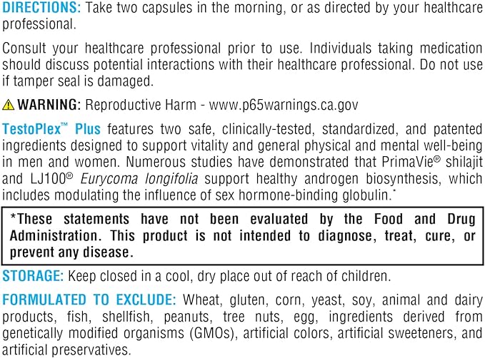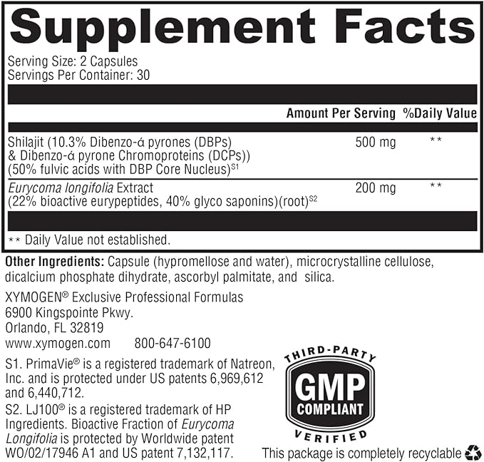 XYMOGEN TestoPlex Plus - Supports Healthy Testosterone Levels, Cognition, and Overall Vitality - Shilajit + Eurycoma longifolia Extract Supplement for Men and Women (60 Capsules)