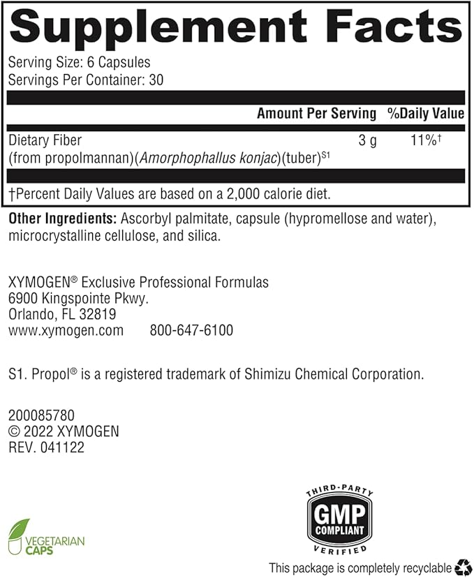 XYMOGEN OptiFiber Lean Fiber Supplement - Daily Fiber Capsules for Digestive Health + Cholesterol Metabolism Support - Gut Cleanse (180 Fiber Capsules)