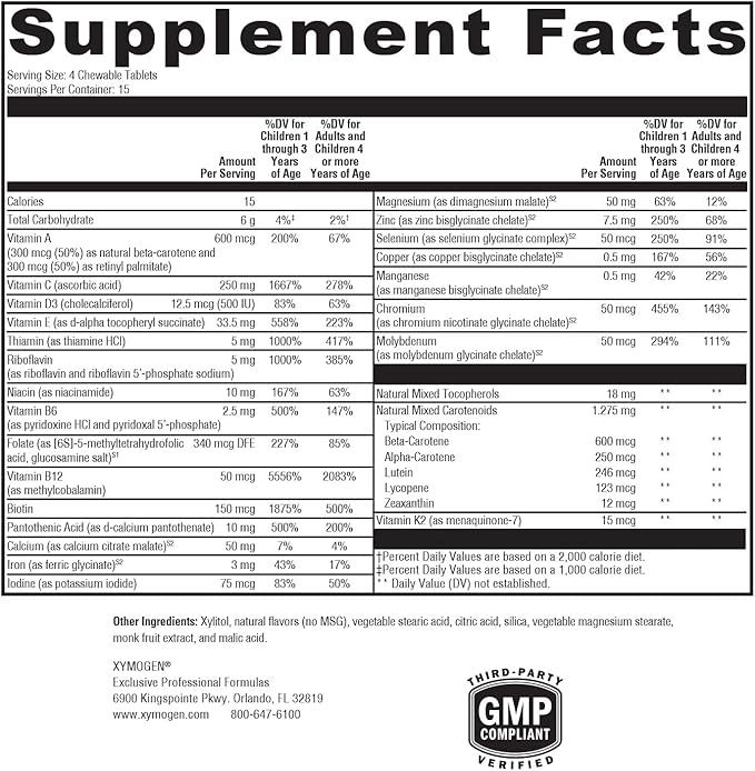- Each great-tasting tablet provides 22 important vitamins and minerals in active, highly bioavailable forms and is free of artificial colors and flavors, preservatives, and high-fructose corn syrup.*