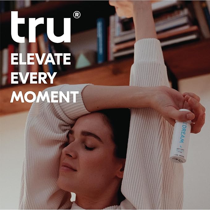 - DREAM SHOT - Blended with chamomile, GABA, and magnesium, Tru Dream Shot is a caffeine free wellness supplement. Often enjoyed as a calm sleep drink, Tru offers melatonin in a naturally flavored sleep shot format for convenience.