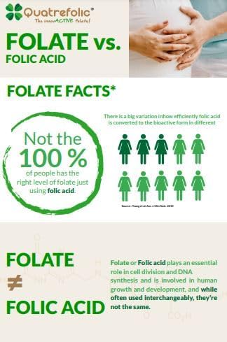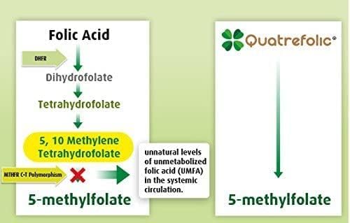 - PATENTED FOLATE: Quatrefolic is the glucosamine salt of (6S)-5-methyltetrahydrofolate and is structurally analogous to the reduced and active form of folic acid so Quatrefolic completely bypasses the damaged MTHFR conversion step and delivers a finished folate the body can immediately use without any kind of metabolization.