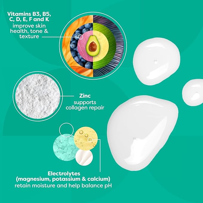 - UNLIKE ANY SERUM YOU’VE USED BEFORE: Ultralight milky serum feeds skin with Vitamins B3, B5, C, D, E, F & K to improve health, tone & texture; Zinc supports collagen and barrier strength; Electrolytes Magnesium, Potassium & Calcium boost moisture retention and balance pH