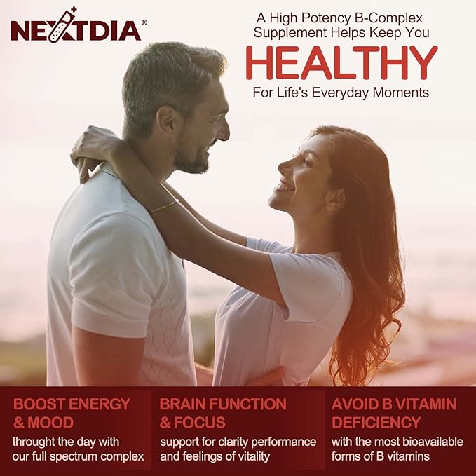 - Superior Potency Vitamin B Complex - Your body needs B-complex vitamins to function optimally. They supports functions such as energy production, metabolism, brain health, heart health and natural prenatal health. Our Nextdia’s formula delivers all 8 essential B vitamins B1, B2, B3, B5, B6, B7, B12 and folate. Also added vitamin C, zinc, choline and inositol, making it the most potent available gummies.