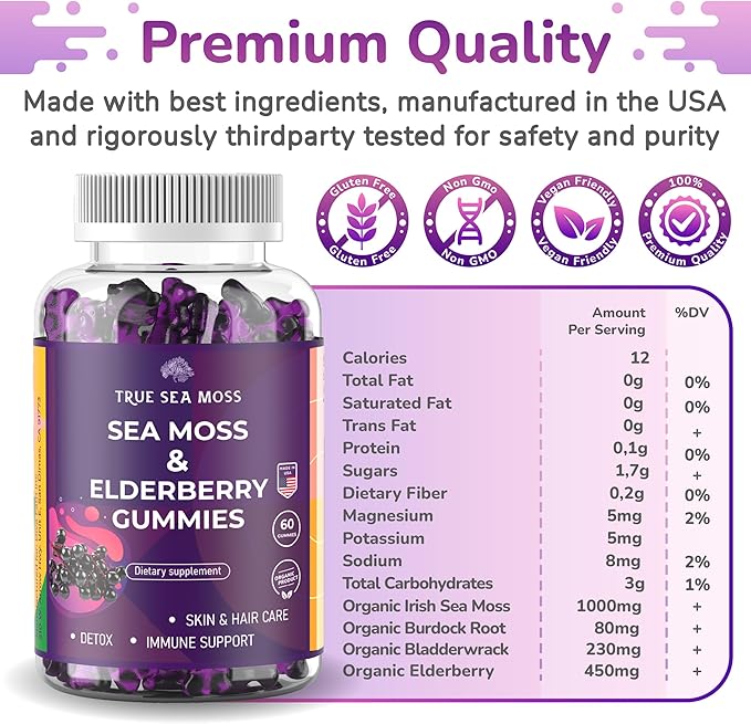 - MULTIPLE HEALTH BENEFITS: trueseamoss gummies are more than just a delicious everyday delight. Also sea moss gummies are combined with elderberry extract can help support a healthy immune system and reduce inflammation