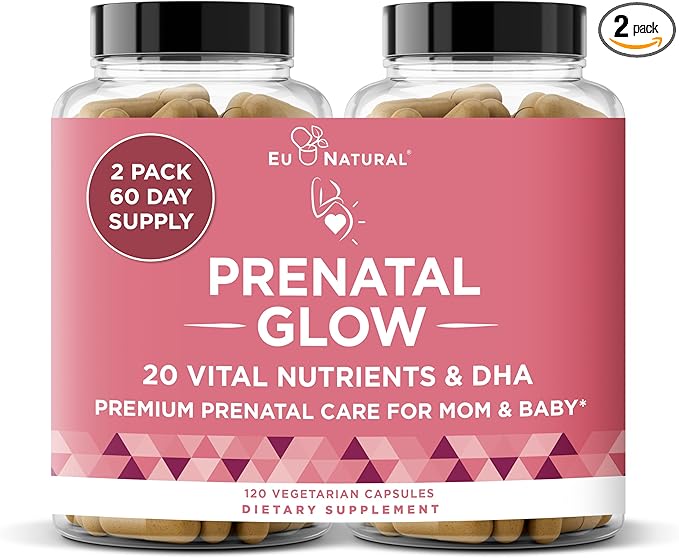 Glow Prenatal Vitamins for Women – 20-in-1 Vital Nutrients for Healthy Pregnancy and Fetal Development – Folic Acid & Vegan DHA For Baby's Growth & A Comfortable Pregnancy – 120 Nourishing Capsules