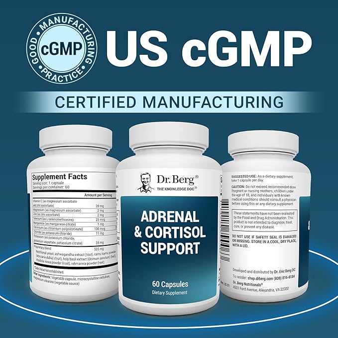 Dr. Berg Adrenal & Cortisol Capsules - Adrenal Supplement & Cortisol Manager - Mood, Focus, Relaxation and Stress Support - Adrenal Supplements with Ashwagandha Extracts - 60 Capsules