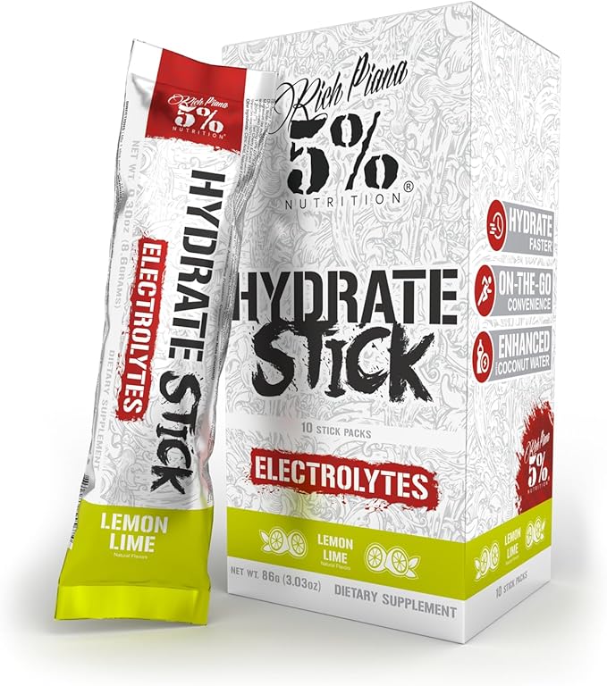 5% Nutrition Hydrate Stick Hydration Packets | Sport Electrolyte Powder Mix Packets with Coconut Water (Lemon Lime) (10 Count)