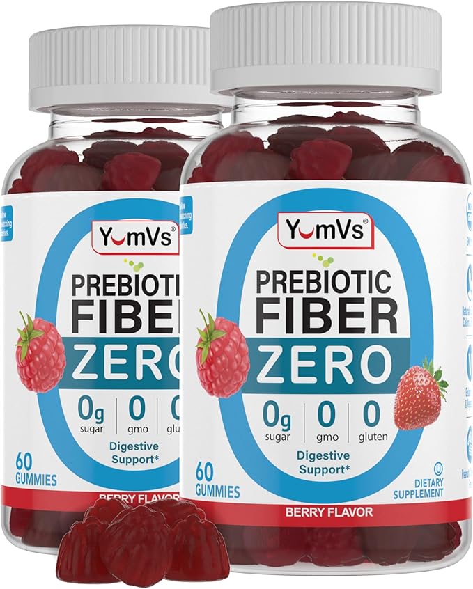 YumVs Sugar Free Prebiotic Fiber Gummies for Adults and Kids - Berry Flavor - Kosher Halal 4g High Fiber Supplement for Women and Men - Daily Fiber for Digestive Health (60 Count, 2PK)