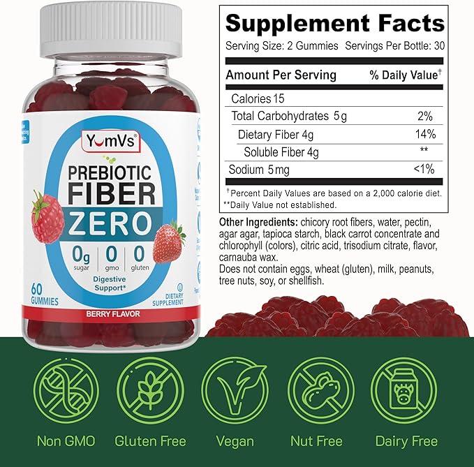 - SUGAR FREE NEVER TASTED THIS GOOD - Enjoy the deliciousness of this prebiotic gummy fiber supplement for men and women without any added sugar. Perfect for people monitoring their sugar intake. Savor sweet berry flavor that's completely sugar-free and guilt-free.