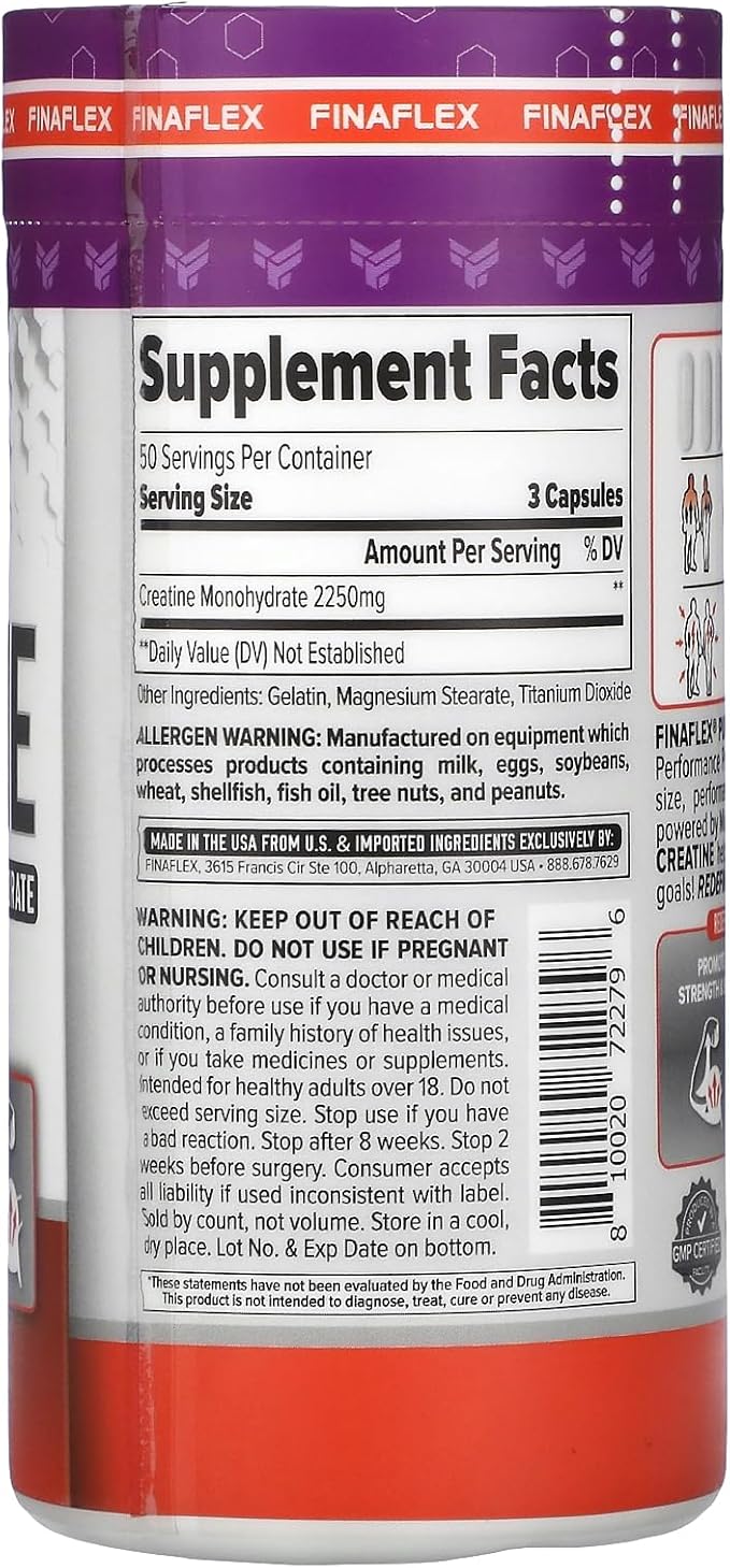 FINAFLEX Pure CREATINE - 150 Capsules - Promotes Muscular Strength, Size & Performance - 100% Pure, Micronized Creatine Monohydrate - 50 Servings