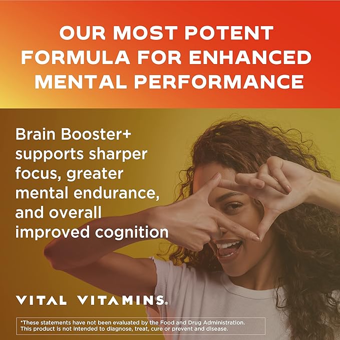 Vital Vitamins Brain Supplements for Memory & Focus - Brain Booster Plus Lion's Mane - Nootropic Brain Health - Memory, Clarity, Energy, Brain Fog - 60 Ct