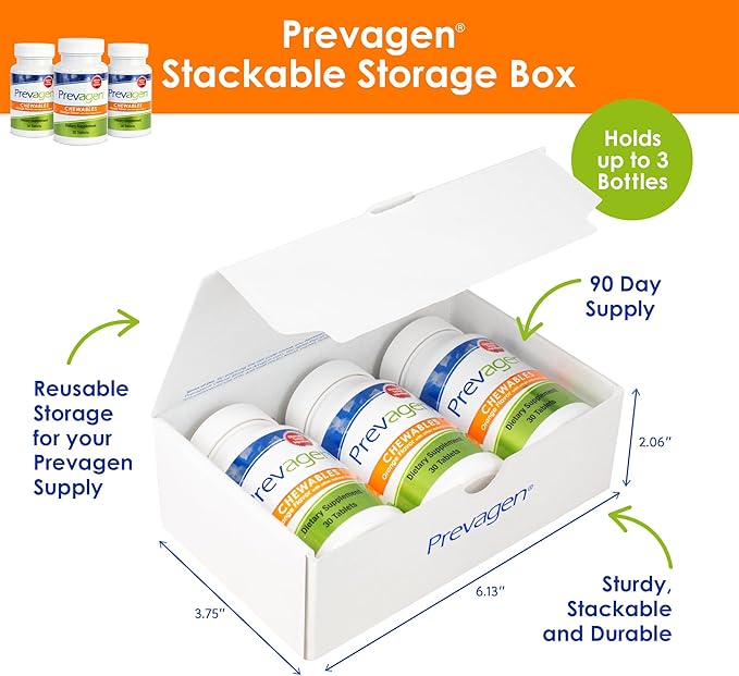 Prevagen Regular Strength 10mg, 30 Chewables |Orange-3 Pack| with Apoaequorin & Vitamin D with Attractive and Stackable Prevagen Storage Box