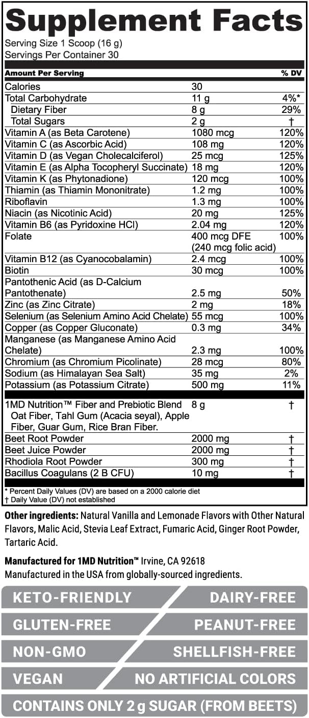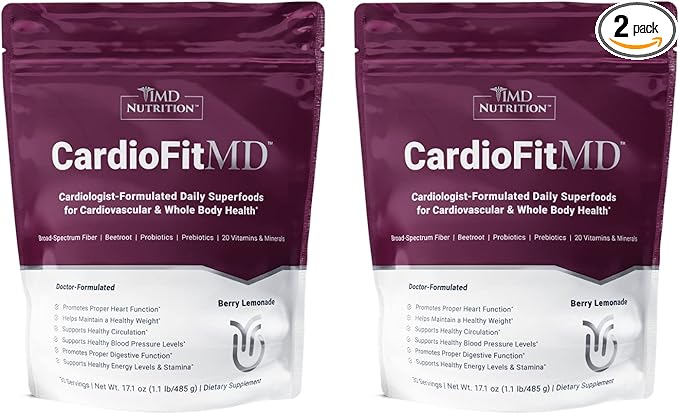 1MD Nutrition CardioFitMD - Vegan Beets Superfood Keto-Friendly Heart Health Powder - Fiber Nutritional Supplement Drink - 30 Servings (2-Pack)