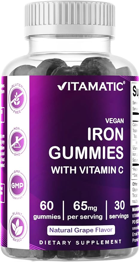 Vitamatic Iron 65 mg Gummies Supplement for Women & Men - 60 Vegan Gummies - Great Tasting Iron Gummy Vitamins with Vitamin C (1)