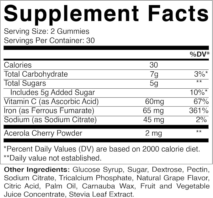 - VEGAN FRIENDLY - Our Iron Gummies are pectin-based which is vegan & vegetarian friendly