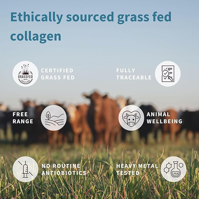 - CERTIFIED 100% GRASS FED COLLAGEN POWDER & TESTED FOR HEAVY METALS: offering the highest grade all-natural grass fed collagen peptides powder , ethically sourced from free-range cattle raised on farms with strict animal welfare protocols. No hormones, industrial feed or routine antibiotics