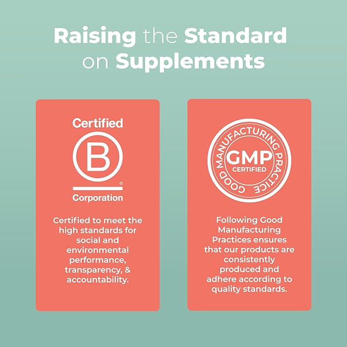 - For Most Lifestyles: USDA Organic, Non-GMO, No Gelatin, Pectin Based, Vegan, Made in a GMP Facility, Dairy Free, Nut Free, Gluten Free, Soy Free. B Corp Certified.