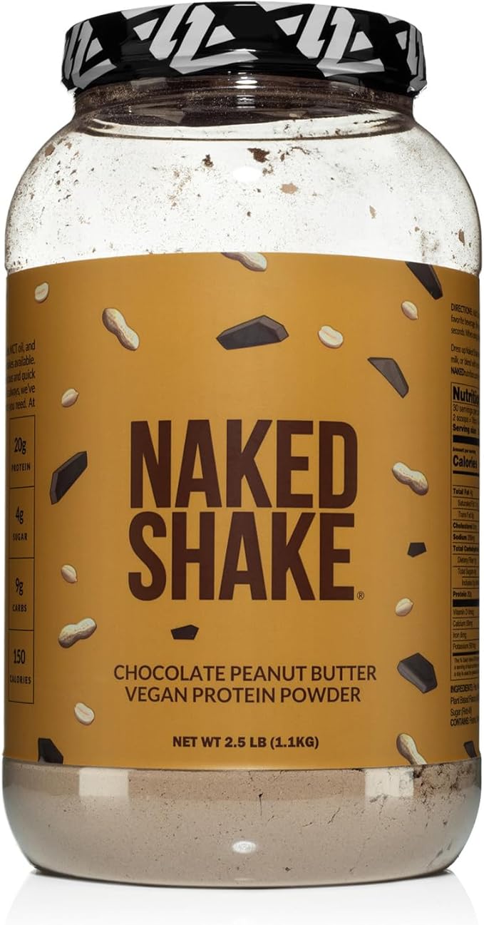 Naked Shake - Chocolate Peanut Butter Protein Powder - Vegan Protein Powder from US & Canadian Farms with MCT Oil, Gluten-Free, Soy-Free, No GMOs or Artificial Sweeteners - 30 Servings
