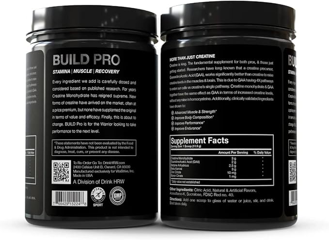 - PERFORMANCE STACKED FORMULA - BUILD PRO is the first muscle-building & recovery formula in North America to deliver a revolutionary patent-pending combination of creatine + GAA, proven to significantly outperform creatine monohydrate on its own.