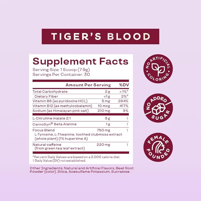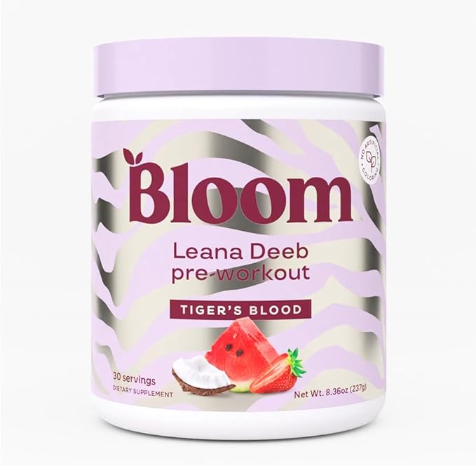 Bloom Nutrition Pre Workout Powder for Women by Leana Deeb - Preworkout Focus Blend with Amino Acids, Beta Alanine, Ginseng, L-Tyrosine & Natural Caffeine - Sugar Free & Keto Drink Mix (Tiger's Blood)
